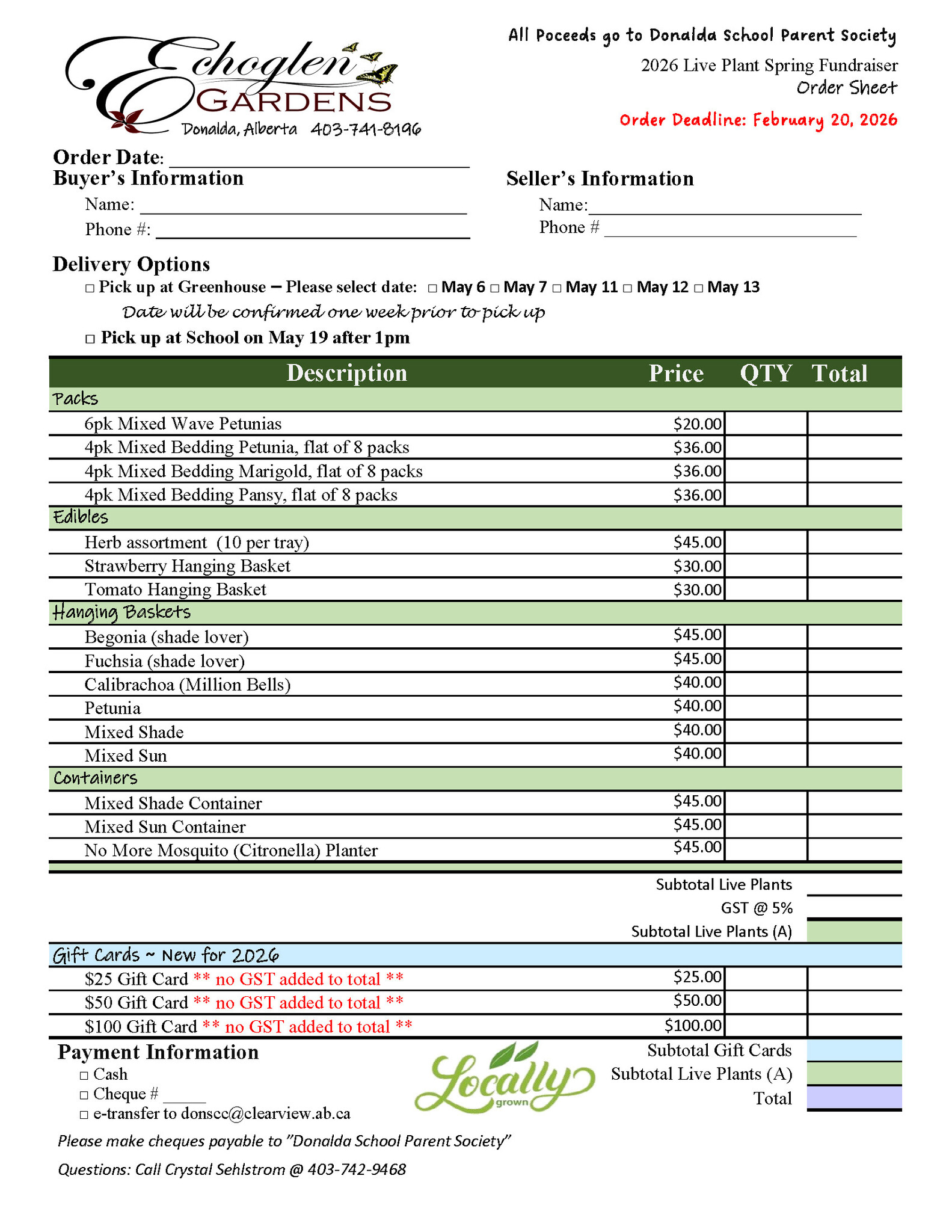 Deadline for orders is February 20, 2026
